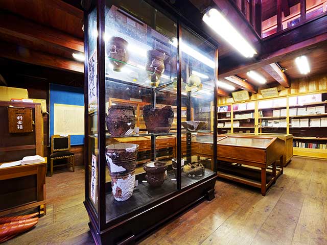 なまこ壁が特徴的な蔵を利用した木曽教育会の資料館です。中世の木曽文化の史料や道具類などのほか、島崎藤村の初版本のコレクションを展示しています。